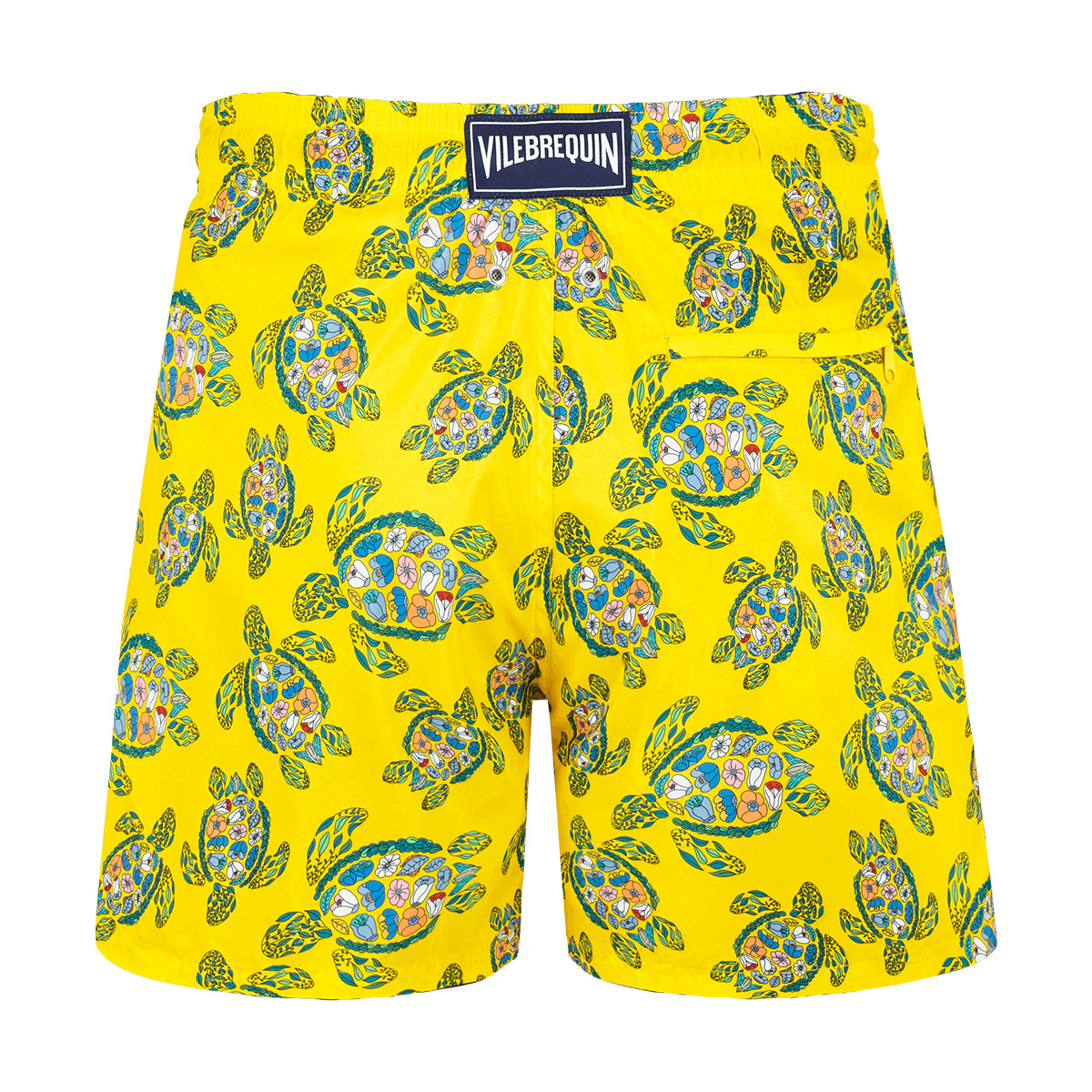 Bu çok hafif kumaşı ile dikkat çeken mayo, katlanarak arka cebine sığıyor ve üzerinde kauçuk Vilebrequin logosu yer alan bir keseye dönüşebiliyor.